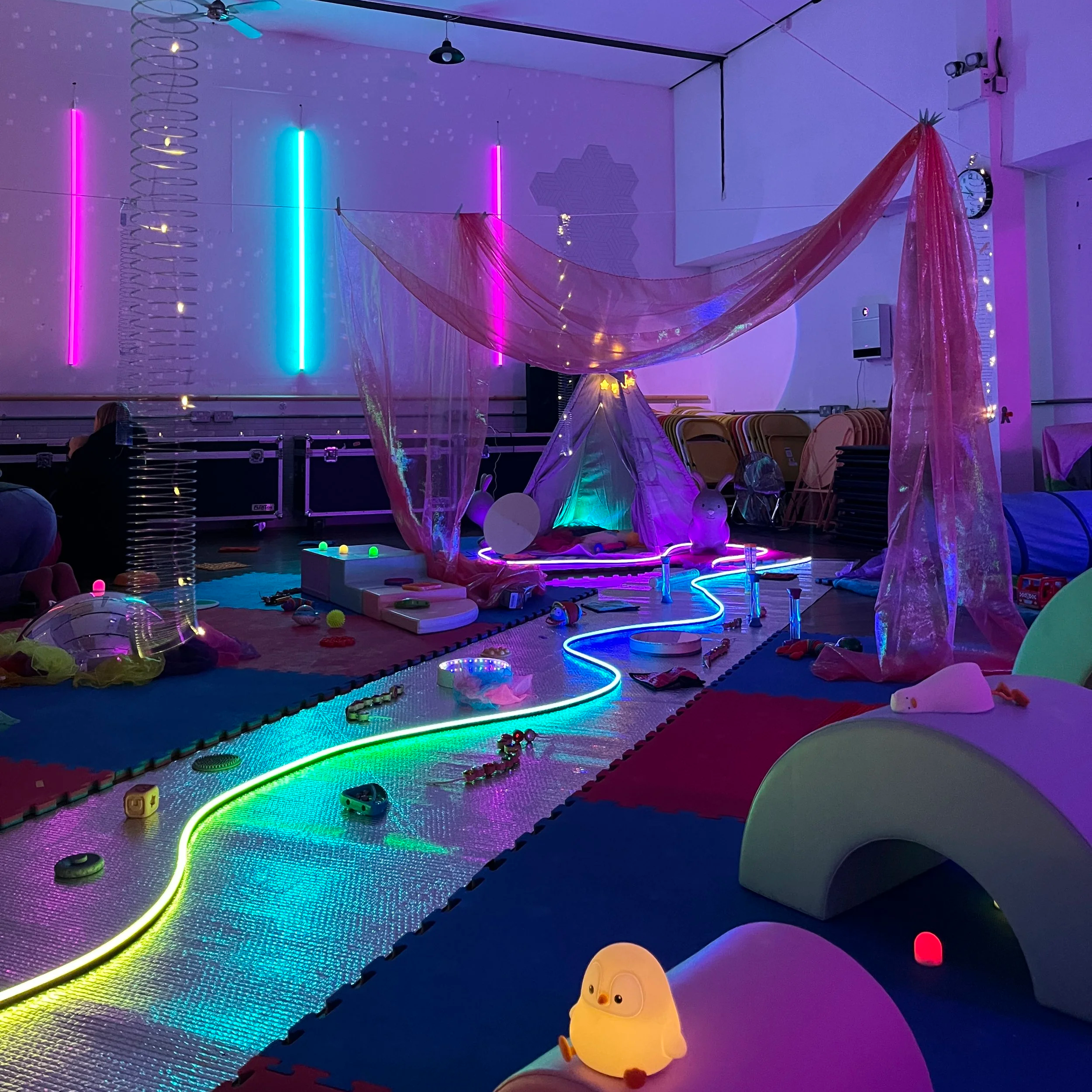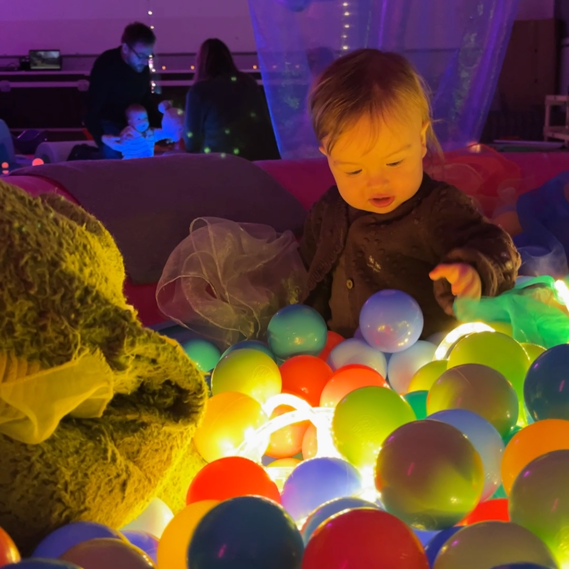 Close encounters with alien textures, cosmic projections and calming soundscapes + twinkly lights, bubbles, and all kinds of funky playthings. We want you to enjoy your time at your speed and in your way. We’re pretty light touch in our leadership - we don’t ask you to do something every 5 minutes! We want this to be an opportunity for you to relax too.